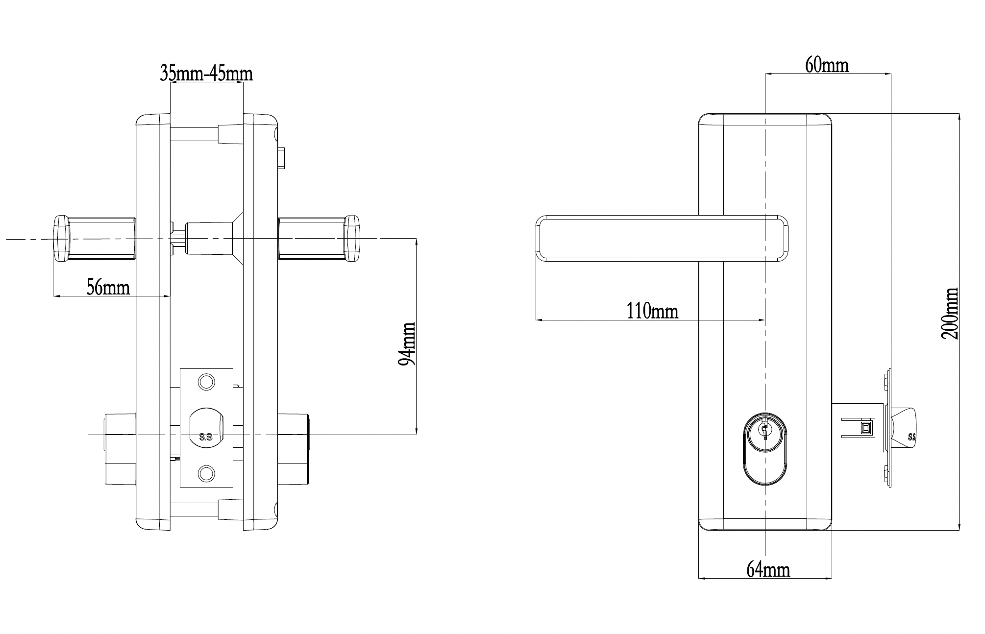 - Suits door 35mm to 45mm thick