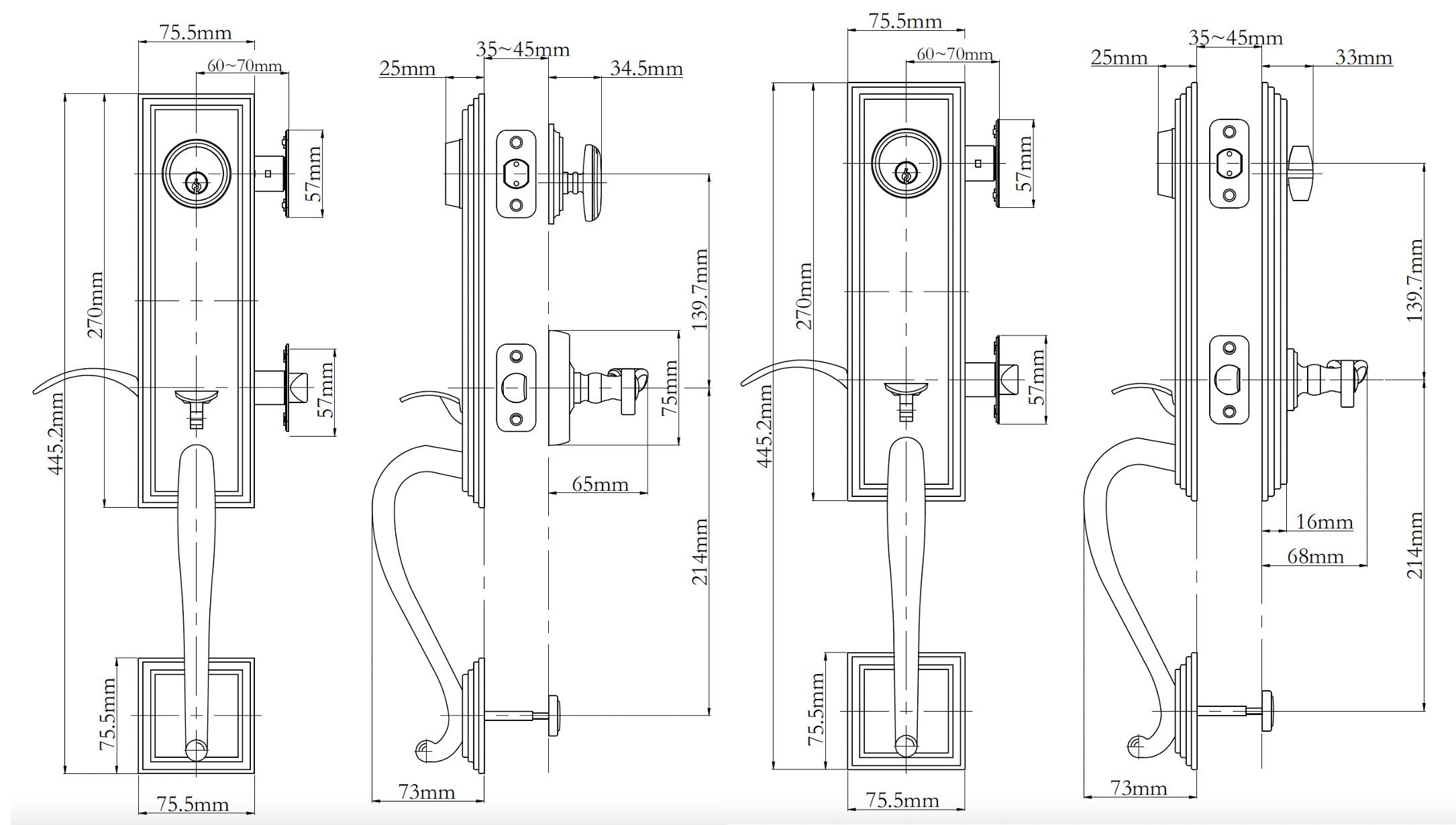 - Suitable for door thickness 35-45mm (Extension kit available upon request)