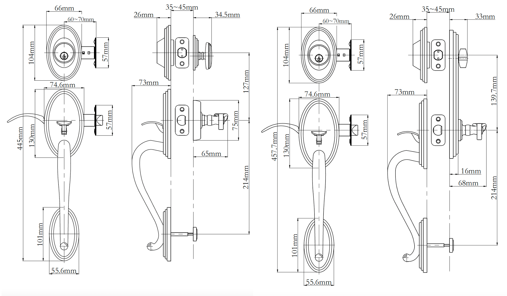 - Suitable for door thickness 35-45mm (Extension kit available upon request)